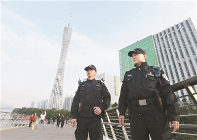 看得见的热闹,背后有全天候、立体化的守护。一年又一年,从早到晚尤其是节假日,广州市公安局海珠区分局赤岗派出所新鸿社区民警吴俊伟时常穿梭在“人山人海”,“泡”在景区里。在他看来,在城市地标执勤,最重要的就是一份责任心,不仅要守护广州塔景区的安全,也要为游客们守住对广州的美好回忆。