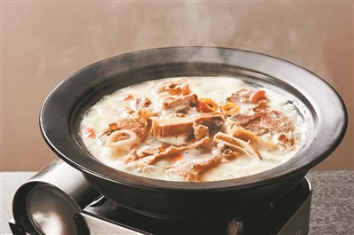 不只羊肉,当地的豆制品也是大有名气,因此,这俩便一拍即合,便有了“习水豆花羊肉”这道当地风味菜肴。羊肉鲜嫩,豆花滑嫩,汤底浓郁,辣味十足。羊肉与豆花的搭配非常和谐,汤头清香,辣味适中,温暖滋补。近日,在白云宾馆的贵州美食节上可品尝到这道菜肴,此次贵州美食节持续到1月10日,喜欢尝新味道的爱好者亦不妨前往打卡尝鲜。