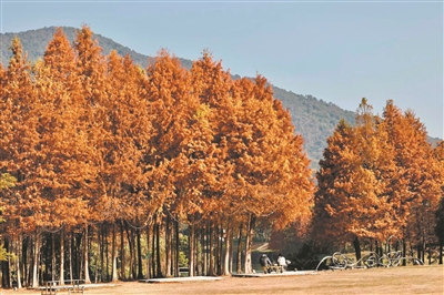 流溪温泉广场有片落羽杉林。