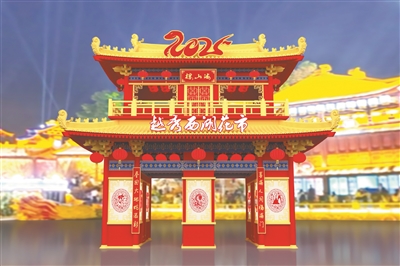 今年将在宝岗大道花市出入口处搭建“海珠迎春花市”的主牌楼,滨江东、西面出入口搭建副牌楼。2025年海珠花市牌楼以“海港古韵,灵蛇献瑞”为灵感,保留传统建筑韵味的同时融入现代设计元素,参照传统古建大宅的空间布局以及港口吊机和航标塔的形象,体现海珠区作为海上丝绸之路重要港口的历史地位。
