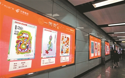广州日报讯 (全媒体记者黄岚)前日,中共广州市委宣传部、中国邮政集团有限公司广州市分公司、广州地铁集团联合推出的2025“灵蛇贺穗”第十一届生肖邮票优秀作品展在广州地铁广州塔站亮相。