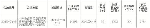 经广州市南沙区人民政府批准,广州市规划和自然资源局南沙区分局公开挂牌出让1宗国有建设用地使用权。