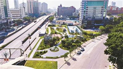 如今,该地块已变身成具有公共体育运动场地、活动广场和康健设施等多功能、综合性的休闲空间,为居民遛娃休闲健身提供了新的去处。园内绿植营造多个绿色共享的小绿洲,也为居民家门口再增“绿色会客厅”,给居民带来“推窗见绿、出门入园”的幸福感。