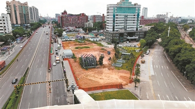 该口袋公园位于开发大道与明珠路交会处,紧挨地铁5号线夏港站A出入口,占地面积约10000平方米,前身是一处黄土裸露、杂草丛生、利用率低的城市边角地块。2024年5月,黄埔区住房和城乡建设局、广州开发区绿化和公园管理中心对该地块实施改造,进行“微更新”,于去年12月底建成开放。
