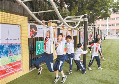 天府路小学,学生在课间活动时间玩耍(资料图片)。 广州日报全媒体记者庄小龙 摄