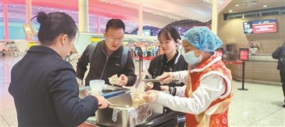 除夕夜,白云机场为乘机出行的旅客特别准备了热气腾腾的水饺。