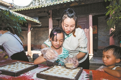 在茶山镇,这份喜爱传承了下来并且更让人喜闻乐见。每年茶山茶园游会期间,当地利用中国传统村落牛过蓢古村落的地理、人文优势,举办牛过蓢松糕文化体验活动,组织茶园松糕传承人现场制作,吸引群众前来品尝和摄影家、画家现场采风。