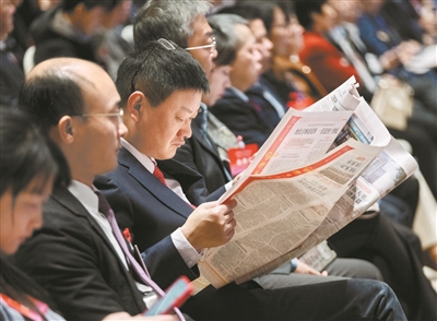 出席大会代表阅览广州日报。广州日报全媒体记者庄小龙、苏俊杰 摄