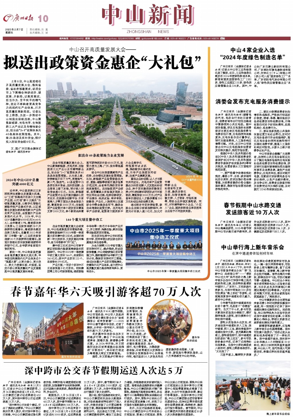春节假期中山水路交通发送旅客近10万人次