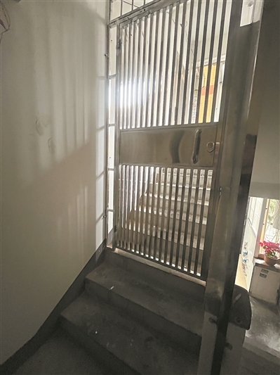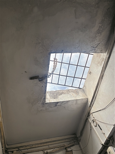 宝和巷5号楼顶楼,一道铁门堵住了通往天台的通道。