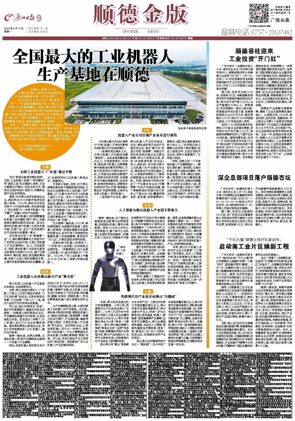 全国最大的工业机器人生产基地在顺德