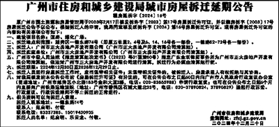 广州市住房和城乡建设局公告