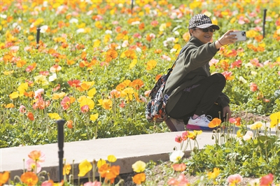 趁着阳光出现,市民在海珠湿地公园赏花。广州日报全媒体记者陈忧子 摄