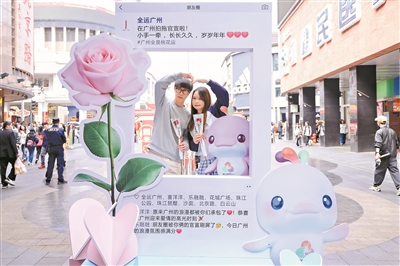 广州日报讯 (全媒体记者孙嘉晖 实习生耿冰一 通讯员十五运会广州执委会)昨日,一场名为“广州全是桃花运”的主题城市活动浪漫启幕。传统节日元宵节的喜庆气氛尚在,加上情人节的浪漫气息,和十五运会吉祥物、会徽等意象的点缀,将广州独有的热情与温柔尽情释放,也奏响了浪漫的前奏曲。