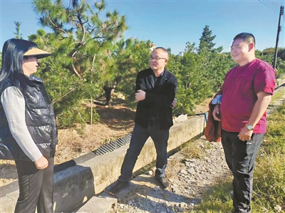 省人大代表朱意琴(左一)实地走访赤坭盆景种植户听取意见建议。