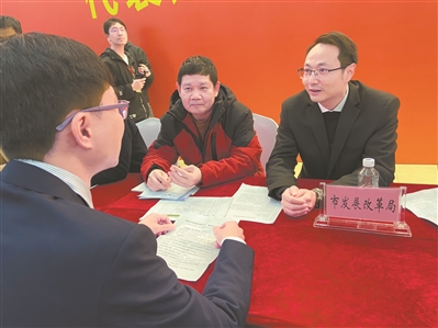 在市发展和改革局“摊位”前,江门市人大代表、台山农商银行沙栏支行行长麦晓彬带着关于推动江门消费升级的建议与该局负责人交谈了10多分钟。