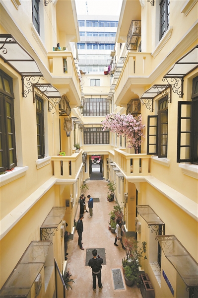 文德楼3号2楼旧居展厅对面就是街坊的家,窗台上既有晾晒的衣服,也有点缀的花草。在这里,红色史迹与人居环境共生。据介绍,在“政府统筹+企业资金+专题博物馆”模式下,文德楼被打造成全市首个在居民区内部运行的红色场所。文德楼的修缮采用“微改造”的方式,最大限度保持原有建筑的历史风貌,同时又使整座楼及周边的人居环境有了改善提升,深受居民好评。