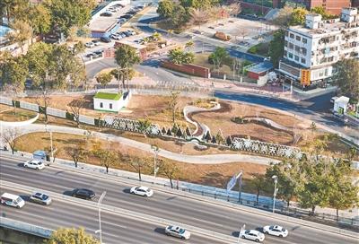 位于兴科路—天源路路口拐弯处的口袋公园,是2024年天河区重点建设项目“兴科路—天源路节点交通条件和功能完善工程”精心之作,也是华南国家植物园北门、西门周边环境“麻雀变凤凰”的重要环节。一年前,这里还是简陋的修车厂、小发廊、仓库以及堆积杂物的荒地,今年2月24日清晨,这里已经成为街坊们晨练的“绿美公园”。