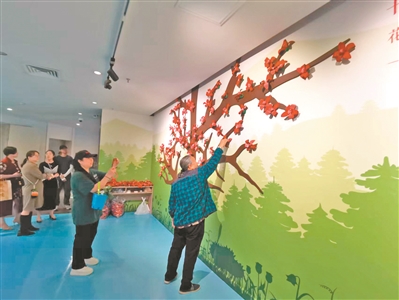 展览中丰富的互动体验环节让观众沉浸其中。在瓦楞纸手工坊,观众们在专业老师的指导下,将瓦楞纸剪裁、折叠、拼接,制作出形态各异的纸艺玩偶。孩子们开心不已,大人们也乐在其中。在木棉折纸活动中,观众们用红色纸张折制木棉花,再将木棉花粘贴在“英雄树”上,形成一片红色的花海。