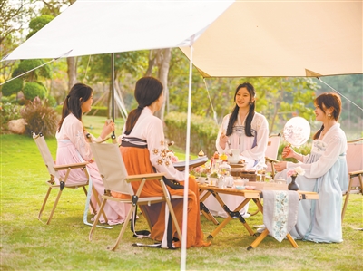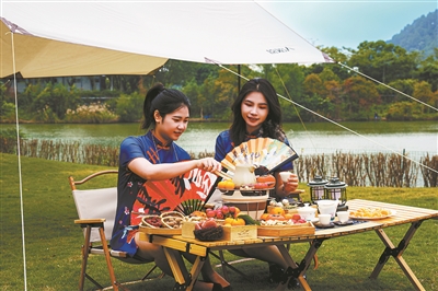 广州南沙花园酒店是与闺蜜相约围炉煮茶的好去处,在大大的草坪上,摆上炭烤炉具。果粒饱满的云南楚雄板栗,烤制后焦香粉糯,搭配小粒红皮花生、瓜子,果仁香气十足,再配上一口清爽绿茶,清爽解腻。将新疆的红枣,烤至外皮微微焦脆,咬上一口,里面的枣肉软糯香甜。
