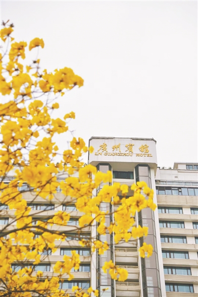 广州宾馆附近,黄花风铃木等鲜花盛放。
