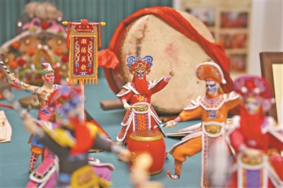 潮阳英歌艺术研究中心里展出的英歌舞文创产品。