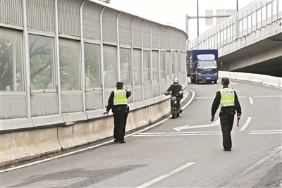 行动期间,少数电动自行车驾驶人在下桥时,看到前方有交警执法,企图掉头逃离均被一一拦下。一名男子强行下桥准备“冲卡”时被执勤交警迅速拦截。