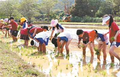 广州日报讯 (全媒体记者马骏 通讯员金麻摄影报道)前日,大朗镇第一小学组织了约50名学生来到该镇凤山郊野公园参与插秧活动,通过劳作体会粮食的来之不易,感受“粒粒皆辛苦”的深刻含义和农耕文化的独特魅力。