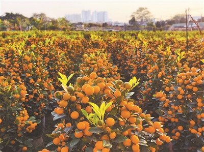 年桔、水仙、桃花是广府人春节期间摆设的三大传统名花,其中年桔更是不可或缺。粤语中“桔”和“吉”同音,广府人便以“年桔”寓意大吉大利、顺顺利利,它是家家户户必备之物,金桔、朱砂桔、四季桔,必买一种,要的就是这个“桔”字。有民俗专家认为,摆设年桔为节日助兴的做法,是广府首创。岭南一直是我国重要的柑橘产地。早在东晋时期,裴渊《广州记》就有关于罗浮山柑橘的记载。据说,从唐朝起,广府民间已经有专门栽培以供贺年的年桔。南宋王栐撰写的《燕翼诒谋录》,有这样的记载:“承平时,温州、鼎州、广州皆贡柑子。”到了明清时期,柑橘业已发展至商品生产时代,在广府地区广泛种植,据康熙年间吴震方所著的《岭南杂记》记载:“广州可耕之地甚少,民多种柑橘以图利。”一盘盘青枝绿叶、硕果金黄的年桔,不仅为新年增添喜庆氛围,更重要的是迎合了一种民俗心理的普遍认同:桔,吉利也;柑(金),财富也。新年买年桔,相当于将“富贵吉利”都请回了家。有些广府人家还会在年桔上挂些“利是”封,寓意来年如意吉祥。
