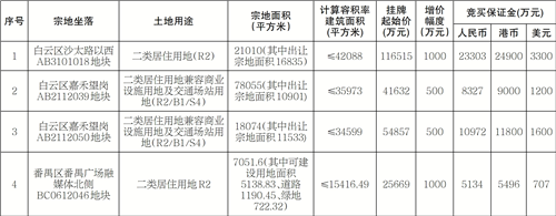 经广州市人民政府批准,广州市规划和自然资源局以挂牌方式出让4宗地的国有建设用地使用权。现将有关事项公告如下: