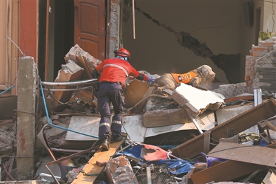 犬的嗅觉是人的100倍,听觉是人的17倍,搜救犬尤其善于短时间大面积搜索以及配合仪器开展搜索,但它们也容易受到环境影响,尤其是在灰尘较多,或现场有其他气味掺杂的情况下。由于当地气温高、灰尘多,废墟里的嗅源干扰很严重,救援人员在深入废墟时往往都需要戴上防护口罩甚至防毒面具,需要依赖嗅觉开展搜索的“多吉”,更是面临着极大的工作挑战。