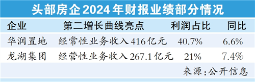 类似的情况还有龙湖集团,该公司年报显示,2024年运营及服务业务合计实现收入267.1亿元,同比增长7.4%,在集团营业收入中的贡献占比达到21%,成为龙湖集团收入、利润及现金流的重要贡献源。除此之外。华发股份、绿城中国等多家开发商均在年报中显示了对于业务多元化的信心。
