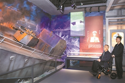 值得一提的是,展览通过话剧《钢铁战士》中麦贤得头部负伤仍坚持战斗的影像,与“英雄艇”611艇模型巧妙结合,生动再现了当年那场惊心动魄的海上较量。声光电特效的完美配合,让观众仿佛穿越时空,“沉浸式”目睹海军将士在弹雨纷飞中英勇作战的壮烈场景。