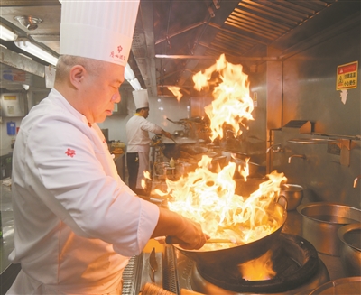 “刚学习炒菜时,见别的师傅炒得那么香,以为只需猛火就能出得来这个效果。实际上一试,发现完全不是如此,尺度也很难拿捏。”蔡伟域说,自己经过相当长一段时间的观察、思考以及练习,才找到了“窍门”:需充分掌握时间、火候以及镬三者的关系。要通过反复训练,甚至多达千百次,才能达到对镬的温度做出预判的能力。猛镬急烹,所求的就是速度以及精准的把握。镬的温度升得很快,美味与“窿”(焦)之间,仅仅0.1秒的差距,这需要厨师不断通过油的翻炒来形成温度上的落差,以实现降温;调味一定要快而准。“只有不畏失败,经过日复一日的总结与训练,最终形成条件反射,才能迅速做出判断以及操作。”