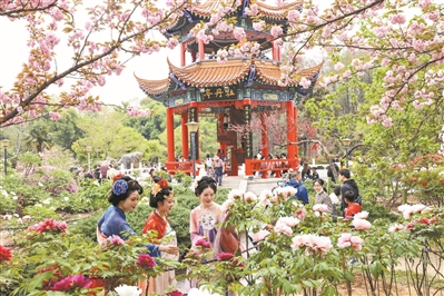 作为历届牡丹文化节的赏花主会场,目前,洛阳王城公园内牡丹争奇斗艳,早开品种牡丹逐渐进入盛花期。今年牡丹文化节期间,王城公园以“周礼千年·万芳归洛”为主题,推出开园迎宾、“六艺”体验等一系列周文化特色突出的沉浸式赏花互动活动。