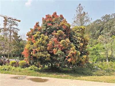 广州日报讯 (全媒体记者黄岚 通讯员叶育石、杜志坚摄影报道)在华南国家植物园深处,生长着藤黄科铁力木属植物——铁力木。铁力木叶如酒红,花如谜,木如铁。其树冠紧凑如塔,枝叶繁茂似绿云簇拥,树干坚实如柱。