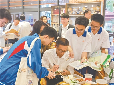 施一公给广附学子签名。(广州日报全媒体记者刘晓星摄)