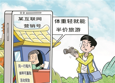 随着“低价游”屡屡被曝光,部分违规旅行社或导游的揽客方式也出现了变化,眼下铺天盖地的“体重轻能获旅行优惠”正是新套路之一。给体重低于300斤的游客半价明显不符合常理。这种营销手段本质上就是利用消费者对政策红利的信任和“薅羊毛”的心理来吸引眼球、设下陷阱,其背后往往隐藏着强制购物、虚假宣传等不法行为。不合理低价游在市场大行其道,扰乱旅游市场正常秩序、破坏公平竞争环境,危害不浅,此风断不可长。