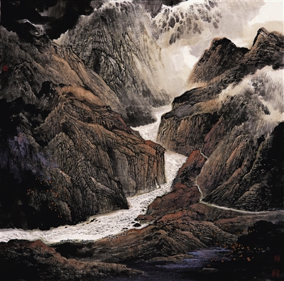 独辟蹊径的变异之美与恪守法度的稳定之美是曾嵘艺术追求的重要体现,也是他画作的第三特色。他在继承岭南画派传统的基础上,勇于创新,总结出“水雾皴”这一独特技法。这种技法在表现水的形态和质感方面具有独特优势,为中国画的表现手法增添了新的元素,展现出他的创新精神和艺术探索。同时,他在绘画过程中严格遵循中国画的基本法度,如笔墨的运用、线条的勾勒等,都体现了对传统的尊重与坚守。他深知,创新是艺术发展的动力,但传统是艺术的根基,只有在传承的基础上创新,才能让艺术之树常青。