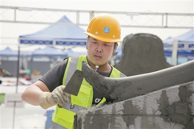 建筑工匠在抹灰项目的比赛中(资料图片)。广州日报全媒体记者骆昌威 通讯员穗建 摄