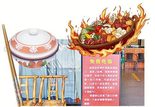 “当时看到老乡有点紧张和手足无措的样子,我想到许多人可能都会和他一样暂时遇到困难。而对于我们餐饮从业者,多炒一份饭菜只是举手之劳,如果能因为这一个小小的举动帮助到他们,那就再好不过了。”胡蓉当即决定之后要在店门口摆放一块“免费吃饭”的招牌,让有需要的人都能够看见。