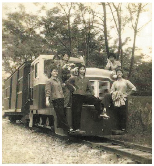 英姿飒爽的青年矿工当年坐着电动火车上下班。