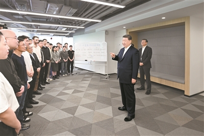 “模速空间”是上海市打造的人工智能大模型专业孵化和加速平台,已入驻企业100余家。习近平来到这里,通过视频短片了解上海市人工智能产业发展情况,察看重点孵化企业的大模型产品展示,听取相关技术研发和企业生产经营介绍。习近平对上海积极发展人工智能取得的实效给予肯定。他指出,人工智能技术加速迭代,正迎来爆发式发展,上海要总结好以大模型产业生态体系孵化人工智能产业等成功经验,加大探索力度,力争在人工智能发展和治理各方面走在前列,产生示范效应。