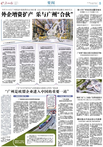 在第137届广交会期间,南方航空通过加密和开拓新的国内、国际航线,实现主要经贸伙伴国家“天天有航班”,为全球客商搭建高效便捷的“空中桥梁”,其间广州市航司合计执飞超1.5万班次,环比增长18.0%。4月底,广铁集团针对假期客流新特征,加开2490列各类列车,服务于全市旅客的“五一”假期出行。