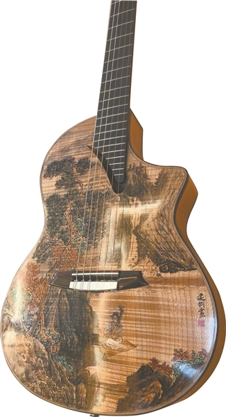 法式宫廷漆画工艺与东方高山流水题材融合的吉他。