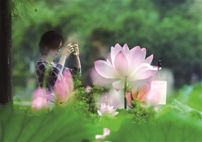 在禅荷花岛,幸运的话,市民还能见到为数不多的并蒂莲。这种莲花中的“双胞胎”茎秆一枝,花开两朵,在自然状态下生成概率仅为十万分之一,可谓荷花中的极品。但在禅荷花岛,几乎每年都能看到这种“珍稀荷花”的出现。