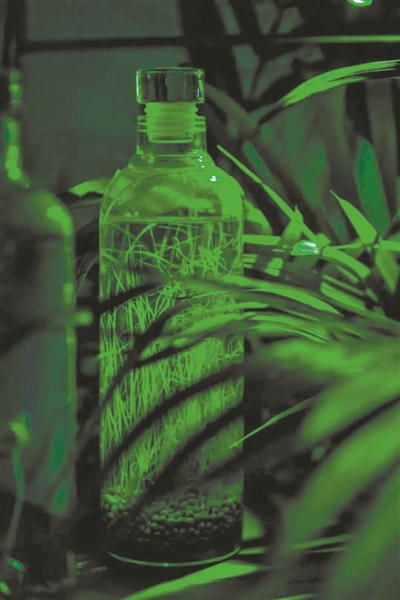 雕塑与公共艺术学院毕业生陈伟焕的作品《加密的赫兹》科幻感十足。“这件作品通过传感器、显微镜等设备,提取植物的生物电信号,转译成各种可视、可听、可感的符号。”陈伟焕介绍道,观众可以利用生物电信号,编曲奏乐,与植物建立对话和通感,重新发现自然生命的奥妙。