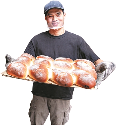 因其优越的自然环境和深厚的文化底蕴,如今的溪头村是一个颇为热门的旅游地,虽然只是夏日里的一个普通工作日,村里的游客也是三五成群。在溪头村一条古老街巷——谷田围里,年轻的蔡驰身穿深色T恤和围裙,在面包窑炉前忙碌着,一托盘面包在炉火的烘烤下慢慢膨胀、上色、飘香……榴莲芝士味的面包一出炉,立马受到游客欢迎,28元一个的面包很快卖完。