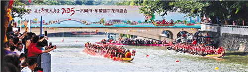 “咚咚,咚咚……”上午9时,比赛拉开序幕,锣鼓声震天响,欢呼声此起彼伏。“郝太原”“麦始兴”“高地苏”等龙舟队先后下水,健儿们身姿矫健,手臂肌肉紧绷。随着开赛号令的响起,他们踏着鼓点的节奏,奋力挥动船桨,龙舟如离弦之箭,飞速从水面划过,激起层层浪花。观众瞬间沸腾,欢呼声、加油声交织成一片,声浪一浪高过一浪。
