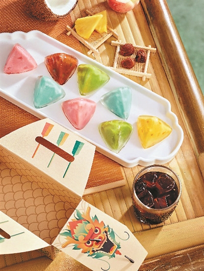“西柚见菠萝”的灵感源于酸甜可口的夏日饮品菠萝柚子茶。美味内馅有菠萝西柚酱带来酸甜交织的滋味,充满夏日活力。罗望酸梅汤的灵感来源于夏季经典饮品酸梅汁,内馅加入罗望子青梅果酱、罗望子泥,让人回味起夏天冰沙酸梅汤的特有味道,咬一口青梅颗粒,口舌回甘。冰沁冻椰椰因经典海南夏季甜品清补凉而生,馅料精选了椰子丁与椰浆,让消费者能感受到椰果丁颗粒与齿尖碰撞的美妙,仿佛置身椰林沙滩,享受大汗淋漓后一口沁凉椰汁的畅快,椰香四溢。白桃碧螺春,这是往年广受欢迎的星冰粽口味,灵感来自清爽的桃子乌龙茶冻,精选碧螺春茶、桃桃果酱为主原料,将茶香与桃香巧妙融合,带来清新怡人的口感。
